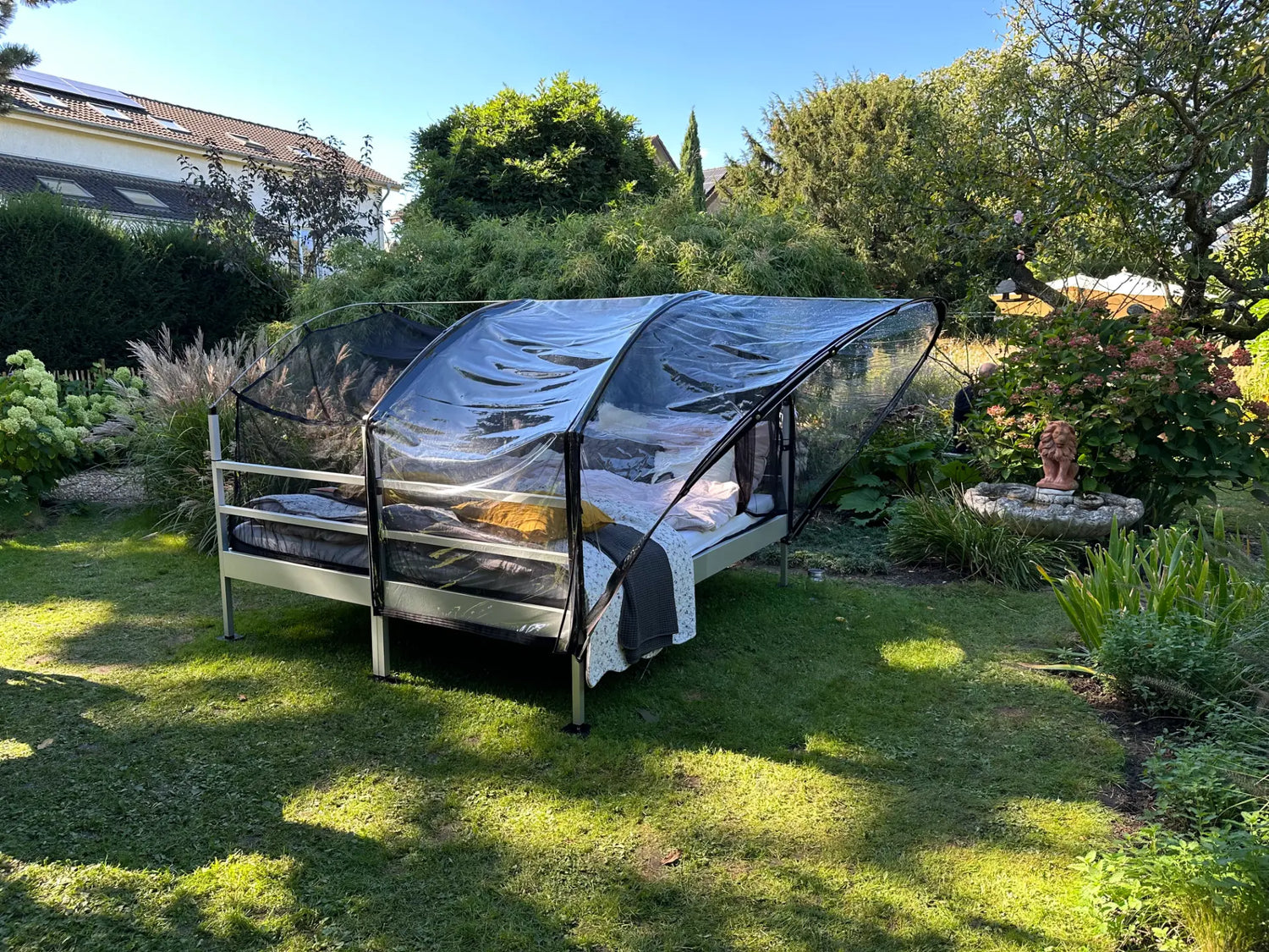 Die SkyHeia ist nicht nur ein Outdoor-Bett – sie ist Ihr Schlafzimmer unter freiem Himmel. Und das können Sie mit Ihrer Lieblingsmatratze und Ihrem Bettzeug so richtig gemütlich einrichten. Kostspielige Outdoor-Produkte sind in der SkyHeia absolut unnötig.